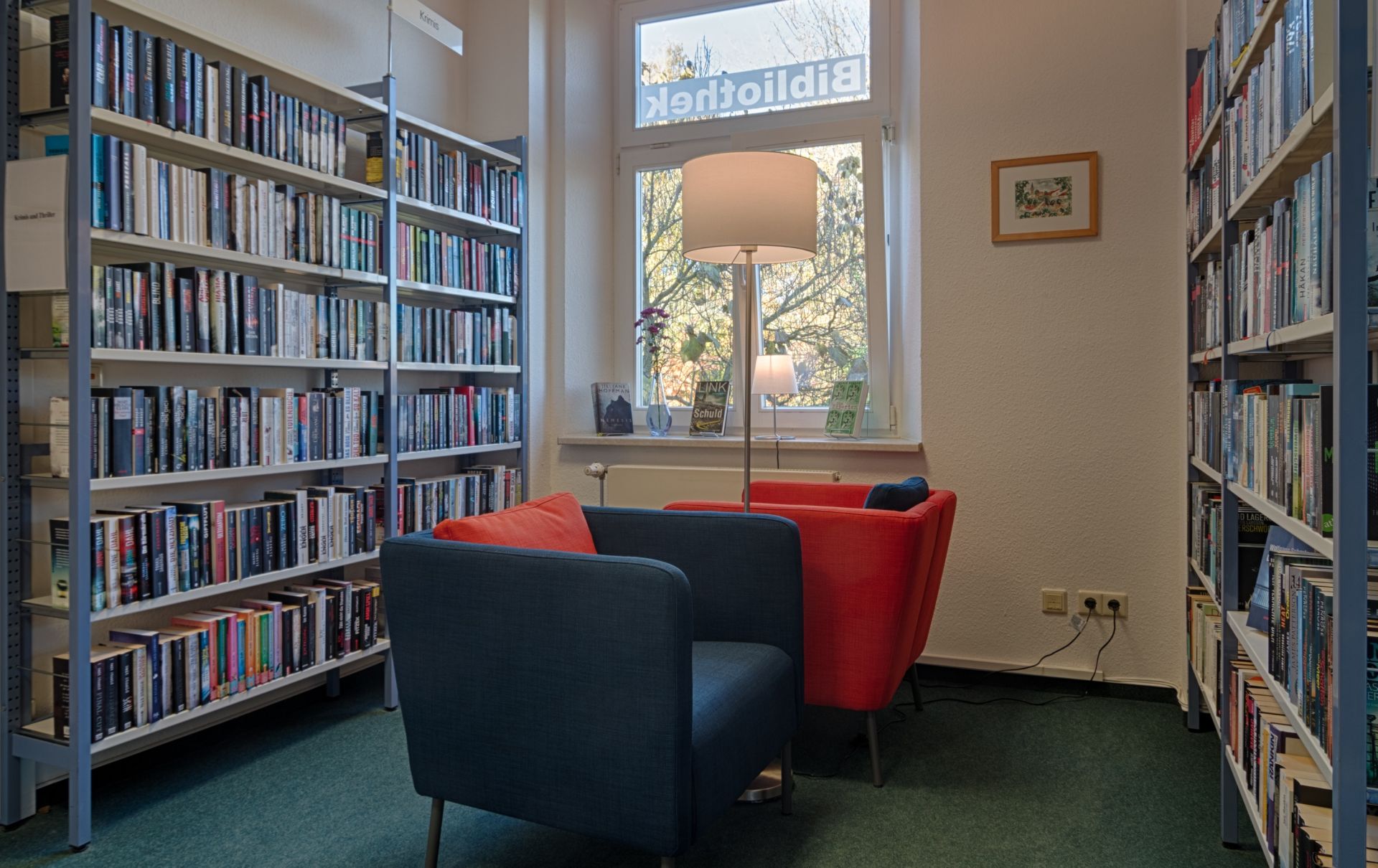 2021: Mit dem Soforthilfeprogramm „Vor Ort für Alle“ fördert der Deutsche Bibliotheksverband bundesweit zeitgemäße Bibliothekskonzepte in Kommunen mit bis zu 20.000 Einwohner*innen. Wir erhielten durch die Förderung neue Sitzecken, ein Schließfachschrank für die Besucher, eine Bibliotheksfahne, Laptop und Tablet.